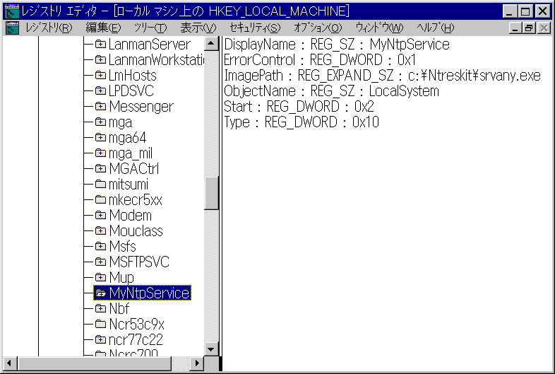 桜時計は、宇野 信太郎さんが作成された、NTP(Network Time Protocol)サーバまたは、SNTP(Simple Network Time Protocol) サーバーを利用して、パソコンのシステムクロックを正確に調整してくれる優れたフリーソフトウェアですが、ご本人のホームページのソフトギャラリーのサポート用ゲストブックでも度々話題になっている Windows NT でのサービス化の方法を矢野@松下電器さんに助言頂きましたので、ここに具体的な方法を載せます。